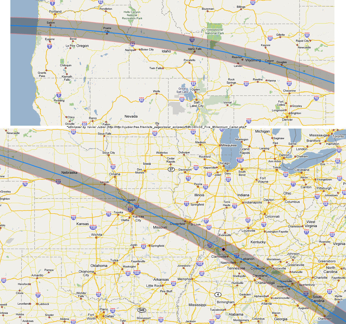 And finally, here are some clickable state-by-state maps that show the path of totality and some