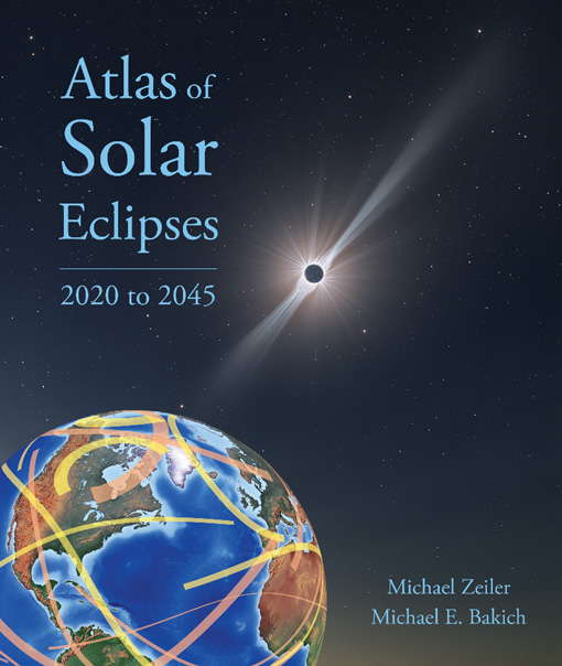 A masterful work, showing detailed maps and information for every solar eclipse through 2045! Written by Michael Bakich (of Astronomy Magazine), with maps by world-reknowed eclipse mapmaker Michael Zeiler. Calculations performed by eclipse expert Xavier Jubier. Highly recommended by Fred Espenak (of NASA). This book should be in every serious eclipse chaser's library!