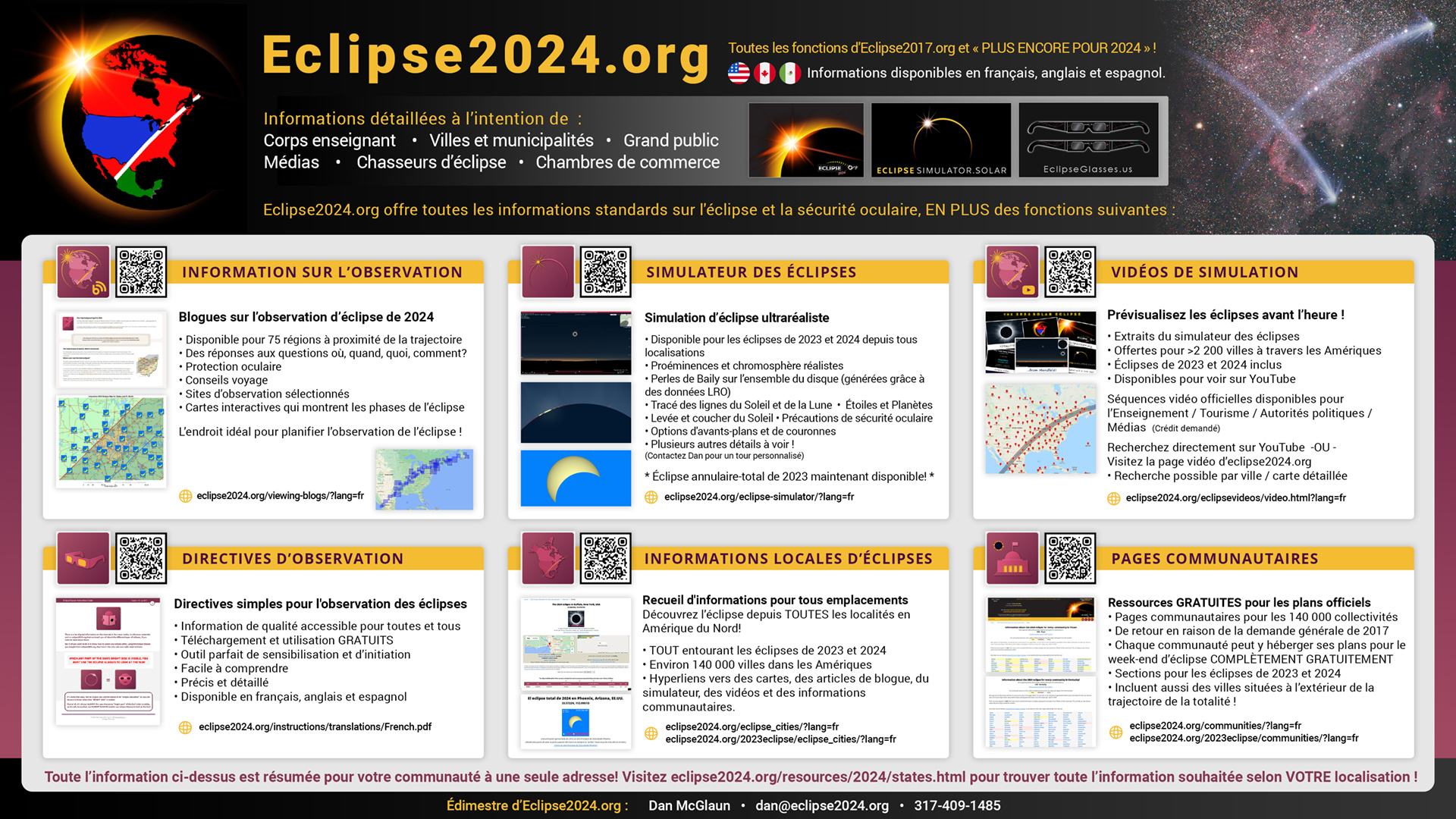 Vous pouvez utiliser les liens ci-dessous pour obtenir des informations détaillées sur l’éclipse de 2024 en fonction de votre ville, de votre pays ou de votre État ou province.
